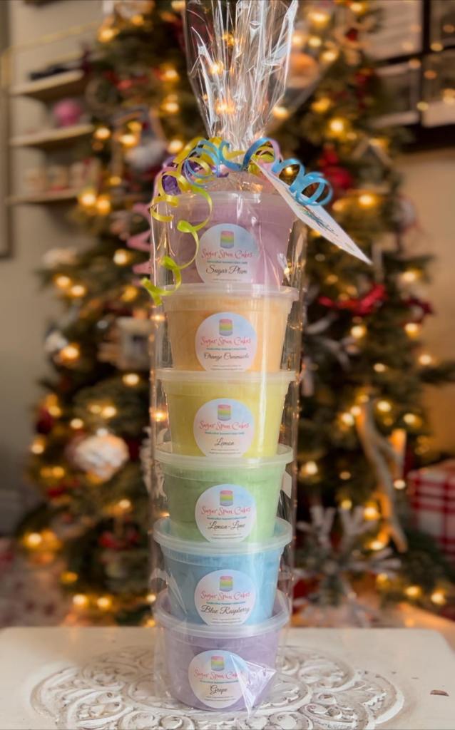 This delectable tower of fluffy sweetness is a unique and delicious alternative to traditional floral bouquets. Perfect for all occasions, from birthdays to congratulations, this cotton candy tower is sure to please anyone who receives it. Choose between either 6 or 9 tubs of cotton candy and each tower comes with a custom personalized message.